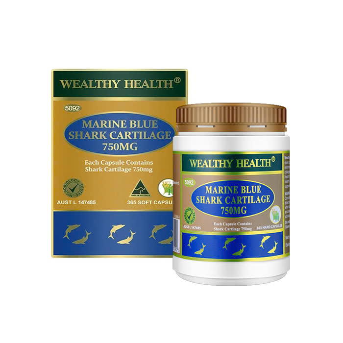 Sụn cá mập có lịch sử sử dụng lâu dài trong y học cổ truyền và được cho là có tác dụng hỗ trợ sức khỏe và khả năng vận động của khớp. Sụn cá mập của Wealthy Health có nguồn gốc từ cá mập xanh biển chất lượng cao và được xử lý bằng kỹ thuật sản xuất tiên tiến để đảm bảo hiệu lực và độ tinh khiết tối đa. Viên nang sụn cá mập Marine Blue Shark Cartilage chứa 750mg sụn cá mập nguyên chất trong mỗi viên, có thể cung cấp tối đa dưỡng chất từ sụn cá mập bản địa.